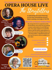 The Livingston Arts Council Presents at the Howell Opera House “Opera House Live: The Storytellers”