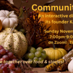 Community Plate: An interactive discussion with its founder Karl Schatz. Sunday November 9, 2025 7:00pm-9:00pm EST On Zoom! Tickets $25 To Register: https://www.simpletix.com/e/community-plate-an-interactive-discussion-tickets-240429 Food connects us to the people and places in our lives, and our food stories help us form connections with others. This workshop will explore the power of sharing food stories to create personal […]