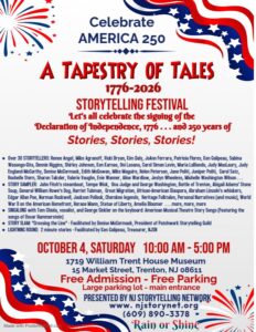 Join New Jersey storytellers as they celebrate 250 years of storytelling in America. Check NJSN website for details about the Story Slam, Lightning Round, and four concurrent venues running during the event.